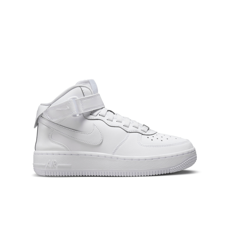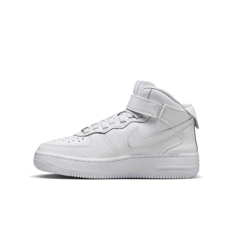 Nike Air Force 1 Mid EasyOn Calzado para niños grandes Claro, parece un AF1 clásico, pero tiene una diferencia muy útil. ¿Puedes verla? Para que sea más fácil de poner, agregamos agujetas elásticas y un talón que se estira y expande para ofrecer una experiencia de calzado fácil de poner y andar. Las unidades Nike Air y la suela de goma añaden la amortiguación y durabilidad clásicas del AF1 para que siempre tengas todo listo para jugar. FlyEase ahora es Nike EasyOn. Nuestras prácticas características Nike EasyOn le dan a los niños el poder de hacer todo por su cuenta, para que se concentren en lo más importante: jugar. Póntelo y anda con el talón que se estira y expande a medida que te pones el calzado. Las agujetas elásticas y una correa de cierre sencillo te ayudan a prepararte para jugar rápido. Originalmente diseñada para el básquetbol de alto rendimiento, la amortiguación Nike Air brinda comodidad duradera. El cuero auténtico y sintético añade durabilidad, soporte y estilo de herencia. La suela de goma con el clásico punto de pivote de básquetbol añade durabilidad y tracción. More Details