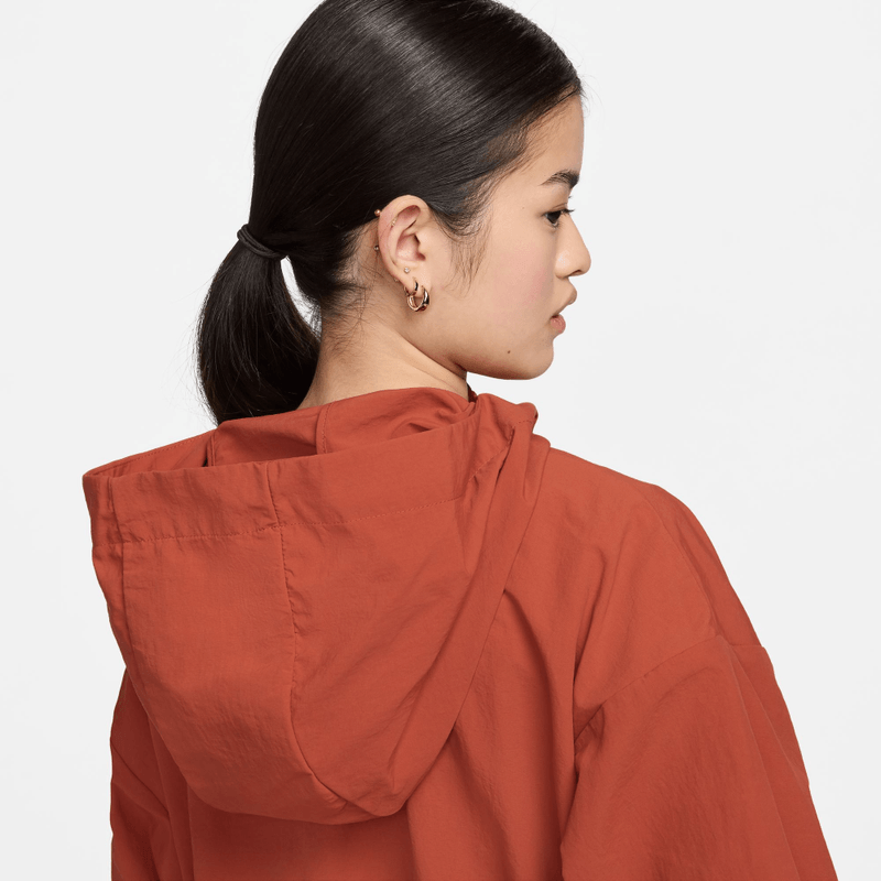 Nike Sportswear Everything Wovens Chamarra con gorro oversized para mujer Diseñada pensando en la simplicidad y la funcionalidad, la cintura ceñible significa que puedes apretar la chamarra para un ajuste más entallado o usarla holgadamente para usar fácilmente las capas. Además, agregamos un revestimiento repelente al agua a la tela arrugada para que siempre tengas todo listo para la lluvia. Tiene todo lo que necesitas para cubrirte con estilo. Los cordones elásticos regulan fácilmente el ajuste. La tela de nylon mate es ligera y duradera y tiene un look arrugado. El acabado repelente al agua ayuda a mantenerse seco durante una lluvia ligera. Los bolsillos con solapa y cierre por contacto guardan todas tus cosas. More Details